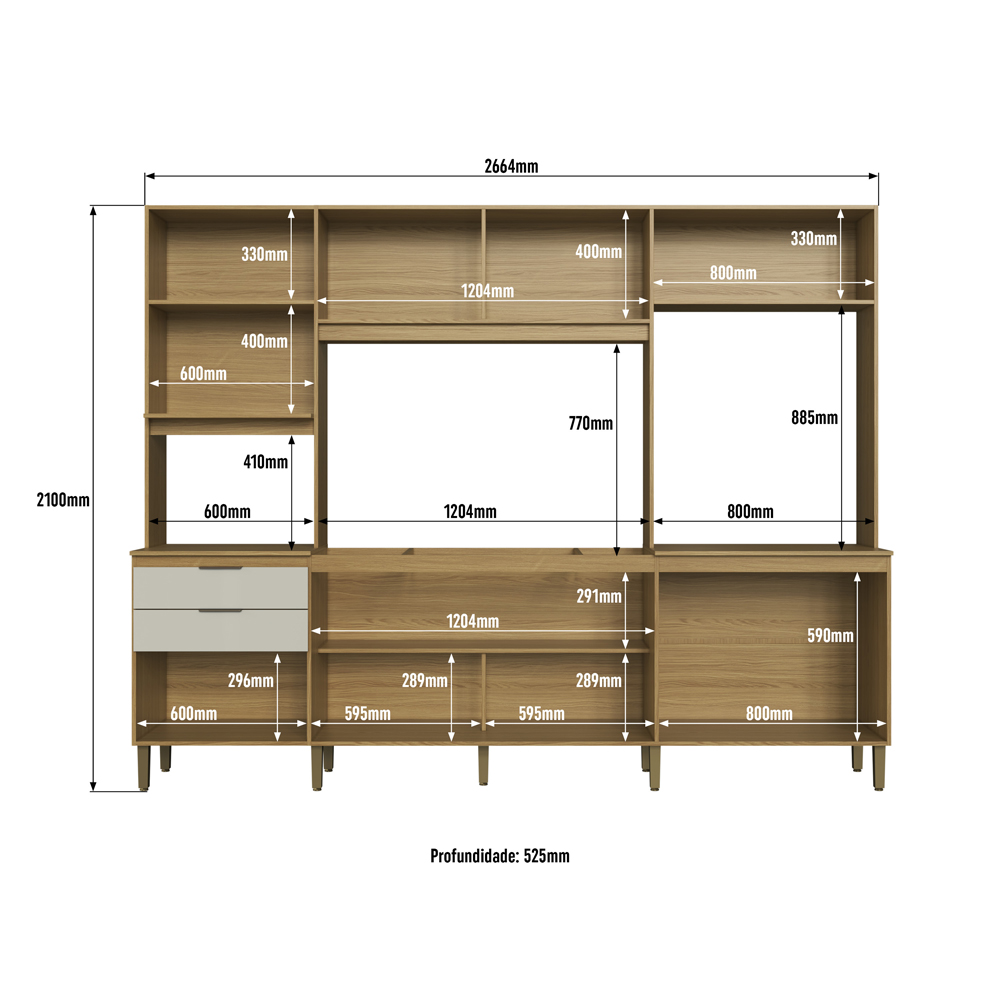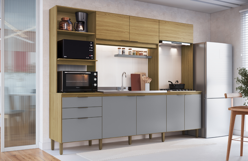 Cozinha Compacta 8 portas e 2 gavetas 2100x2670x525 ipê/cristalo - decibal